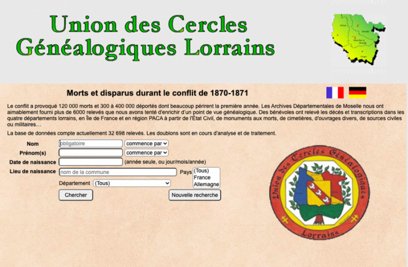 La base de données des morts et disparus durant le conflit de 1870 est disponible sur ce lien