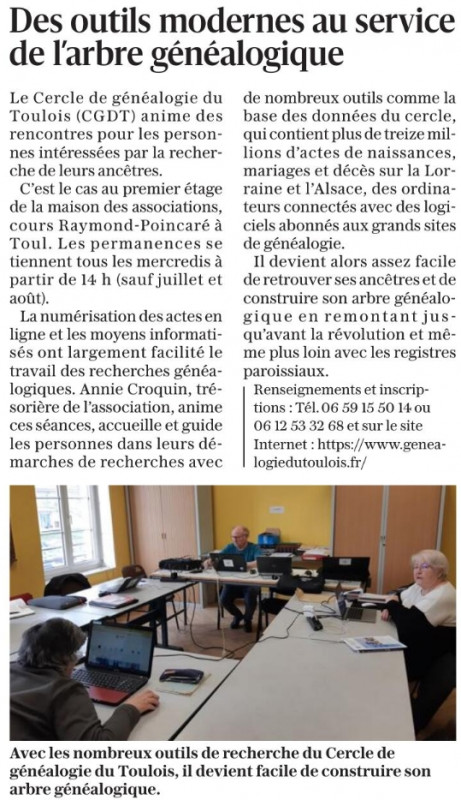 À lire : "Des outils modernes au service de l'arbre généalogique", article de L'Est Républicain du 24/01/2025 !
